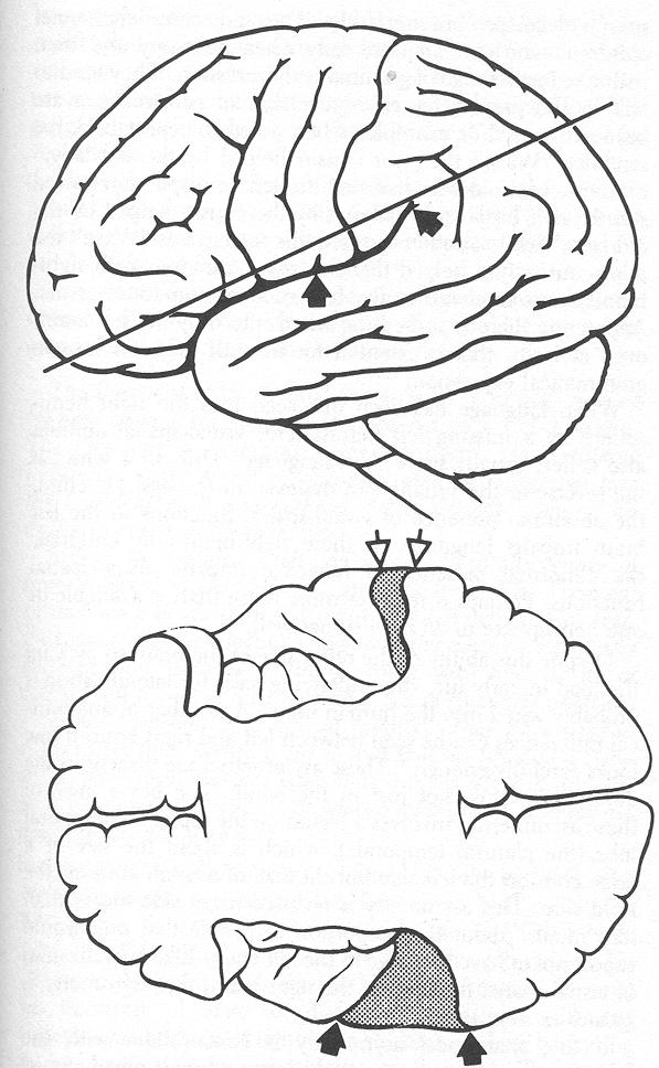 William H. Calvin and George A. Ojemann, Inside the Brain: Mapping the Cortex, Exploring the Neuron (New American Library, 1980), chapter 7. See also http://WilliamCalvin.com/ Bk1/bk1ch7.htm. |
