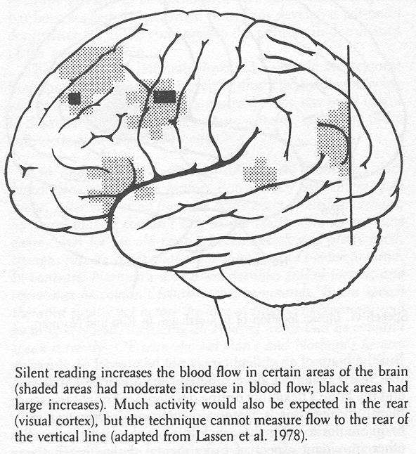 Musical abilities also seem to be distributed on both sides of brain. The right brain plays a major role in music, for during the time that only the right brain is put to sleep by barbiturate injections, the patient sings in a monotone, having lost the ability to correctly reproduce pitch; rhythm is less disturbed. Temporal lobe seems to be especially important to music. Right-temporal-lobe damage disturbs memory for tone sequences and for loudness, though rhythm memory is relatively unaffected. Left-temporal-lobe damage does not alter memory for tone or loudness, though it may affect rhythm. Yet damage to parts of the left temporal lobe will sometimes greatly interfere with musical abilities. Emotional responses to music are said to be diminished after left-brain damage. It has been suggested that skilled musicians develop a left-brain dominance for music compared to the right-brain dominance of the average person. The areas of the left brain involved in music are separate from those for language, however, as illustrated by the following two patients. Because of this, music therapy has been useful in the rehabilitation of some aphasic patients, especially those with deficits in language fluency. Ron and Norman were admitted on the same day with blood clots in their left brains. Ron's hobby was singing folk songs. After recovering from the acute effect of his hemorrhage, he found that he couldn't sing at all. Neither words nor tune came, even for his old favorites. His speech was pretty good, though, just an occasional name that wouldn't come to mind. In contrast, Norman's speech was terrible, full of jargon, and sometimes he couldn't follow verbal commands. But a speech therapist finally got across the idea of singing to Norman, and he sang very well, including all kinds of words that he couldn't speak correctly. CT scan showed Ron's and Norman's hemorrhages to be about the same size, but Ron's was in the front part of the left temporal lobe, Norman's in the back part. As far as the brain is concerned, there seems to be a difference between speaking and singing the same string of words. Does the tune provide a framework which helps Norman put the words in sequence? Does Ron's inability to sing reflect a failure in the coordination between word strings and the tone sequence? We would like answers to such speculative questions, but how can we get them? In science, one tries to phrase the question (i.e., design the experiment) in such a way as to force nature to give an unambiguous answer. Strokes are intrinsically messy experiments performed by chance. Electrical stimulation, as we have seen, is more localizable and controllable (and, most important, reversible!). But the brain of an epileptic may not be normal (in the sense that many epileptics have suffered seizures since childhood, and the brain's flexibility during development might rearrange maps); indeed, this is a major problem in interpreting split-brain studies to infer the capabilities of the right brain. Another important aspect of experimental design is what one asks the patient to do. One must accurately measure a particular, limited kind of behavior (such as naming, post-distractional memory for words, phoneme recognition, etc.). If one wanted to design experiments around our speculative questions relating word sequence to tone sequence, one would have to come up with some ingenious verbal tests and then find some technological method of measuring or disrupting neuronal function. ![]() Thus, the "maps" of cortical function may be biased by the techniques available and by the questions asked. But there is also another way of finding where different brain functions are located. When neurons work, they increase the blood flow locally. So if blood flow is measured during a test of specific behavior such as reading, the areas of brain that are working harder during that behavior can be detected. " Such blood-flow measurements can be made through the intact head by introducing a radioactive tracer in the blood (radioactive xenon is commonly used) and placing a series of radioactivity counters over the scalp. The counters are designed to measure just the radioactivity coming from brain directly beneath them. The rate at which the tracer is cleared from beneath the counters is determined, a measurement proportional to blood flow. At present this technique cannot adequately discriminate between blood flow in cortex and that in underlying brain. But such measurements confirm, in the intact person, many of the findings derived from the study of stroke patients or from stimulation mapping of epileptics. Each of the techniques has its limitations, but together they give us a picture of cortical localization. The blood-flow techniques have also allowed studies to be made of the cortical areas active in mentally rehearsing an act without making any movements. In silent reading, parts of the frontal lobe become quite active, together with language and visual areas; when reading aloud, the motor strip's oral and facial areas also increase their activity. This may suggest an orchestra with the conductor bringing in the trumpets to add to the theme developed by the strings and the woodwinds. But to what extent is this analogy valid, or is the orchestra conductor really just another version of the "little-man-in-the-head" reasoning which has plagued out thinking about the brain? To explore the topic, we will consider the brain's mechanisms controlling attention and arousal, initially by illustrating some of their malfunctions. |