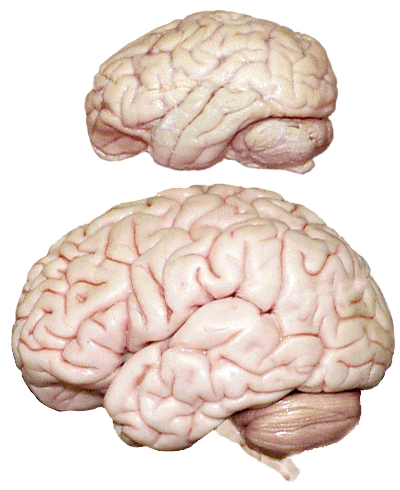 mental checklists and monitor progress on an agenda. The bonobo brain (top) is about the same size as brains of the bipedal apes, such as the australopithecines. The