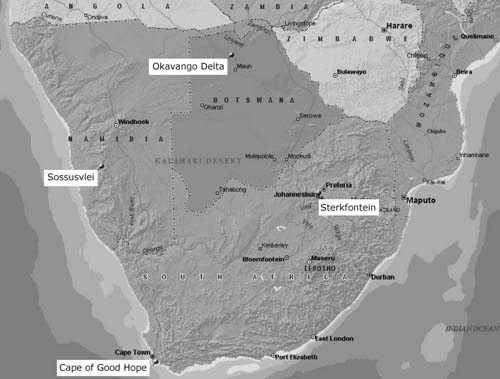 I am in the Kalahari Desert, as far south of the equator as the Sahara