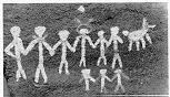 Upstream from Cro-Magnon is Lascaux, a subterranean cavern of considerable extent containing some of the finest of Ice Age art. Many European caves have carvings and drawings of objects, though not on a wide range of subject matter. The subject always seems to be a topic of considerable interest to the adolescent boys who are, after all, the most likely cave explorers. Typical subjects are nubile women, virile hunters, and challenging game animals but not nursing babies or young children at play. One suspects that the intended audience was also exclusively young and male. Yet despite this impoverishment in subject matter, such caverns as Lascaux in the Dordogne, Niaux in the Pyrenees, and Altamira on the north coast of Spain nonetheless contain serious art by most standards, with a careful use of color and texture (such as using the cracks and ridges in the rock face to lend dimensionality to the representation of a suitably situated bison). In the American Southwest, rock shelters often have Anasazi ruins under the overhang. The Indians built houses and ceremonial rooms (kivas) there and farmed nearby plots to supplement their hunting-and-gathering diet. The same "cliff dwellings" often have an Anasazi art gallery nearby. To see them may require hiking for a few days, as is the case with one of my favorite places, Anasazi Valley.