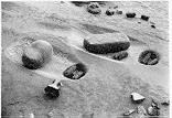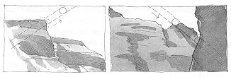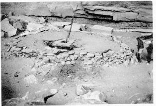 Caves play a large role in our concepts of the prehistoric past. We talk of "cavemen" or, if we like fancy words with which to slander an opponent, "troglodytes" (Latin for cave-dwellers). The cave-dwelling cultures span quite a spectrum, even as one goes north up the Dordogne River valley in France. Downstream is Cro-Magnon (the site for which the people were named), not even a proper cave but more of an overhang, a "rock shelter" that isnt really enclosed against the cold winds but at least stays dry in a rainstorm. Such sheltered areas are often found with fire pits and lots of charred animal bones but not much in the way of ruins, the remains of dwellings that were regularly inhabited. One supposes that Cro-Magnon provided seasonal shelter for a wandering band of hunter-gatherers in the last ice age. Archaeologists love rock shelters; the floors tend to build up higher and higher over the years, what with pieces of the overhang collapsing and windblown soil collecting and compacting. Digging down, the archaeologist finds a series of layers that can be dated (usually using radiocarbon methods on the organic matter). In these layers are cultural artefacts such as stone tools.