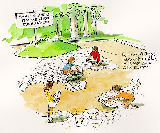 ![]() The schoolchildren who play in the park will first create a hexagonal mold, its bottom carved into a mascot design. Then theyll pour and lay as many of them as they can, design side up. Some areas will have a standard cat design, and then you might walk across some gravel again until encountering another honeycombed area, each paver having the dog design favored by another group of paver-layers. Since theyre all hexagonal in shape, theyre easy for the children to lay without exercising any judgment, a nice algorithmic process. A robot could do it.