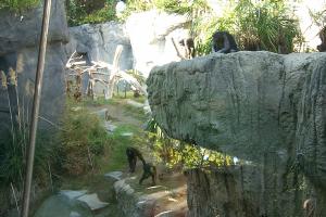 If you haven't seen the bonobo exhibit at the main zoo (caution, it is impossible to find anything on their web site) in a few years, you have a treat in store, as they have constructed a magnificent exhibit (visit, October 1999). |